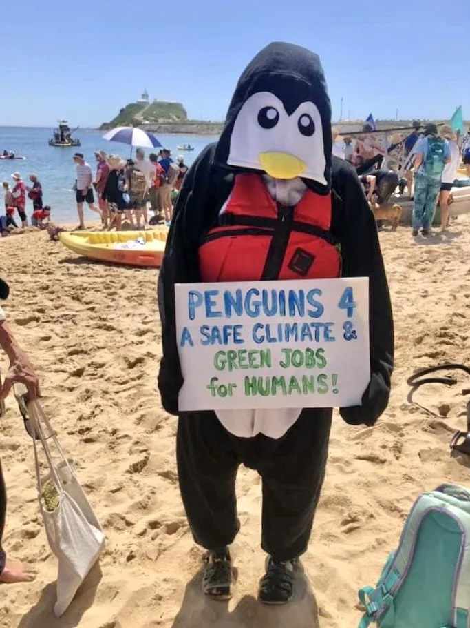 Join the fun protest (aka "protestival") and make a difference. Great community, music, training provided on the theory and practice of peaceful protest, meet and learn from people passionate about caring for the land, sea and sky from all over the country. There are plenty of ways to take part without risking arrest - and you don't have to be a penguin! Find out more and sign up to attend the Rising Tide blockade of the largest coal port in the world (Newcastle NSW): https://www.risingtide.org.au